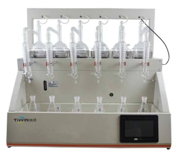 型号 TZL-6A TZL-6B TZL-6D 处理样品数量 6个 6个 6个 蒸馏瓶规格 500ML 500ML 500ML 接收瓶规格 250ML 250ML 250ML 显示界面 LED数码显示+机械调节 7寸大液晶显示 7寸大液晶显示 升温速率 4℃/MIN 6℃/MIN 6℃/MIN 蒸馏速度 10ML/MIN 12ML/MIN 12ML/MIN 终点控制方式 定时 定时 定时+称重 配套冷却 无 风冷 风冷+水冷 防倒吸功能 无 有 有 定时范围 99H 999MIN 999MIN 稳压系统 无 有 有